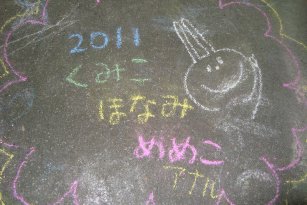 周囲一帯に、チョークで子供達が書いたイラストやメッセージがいっぱいありました。